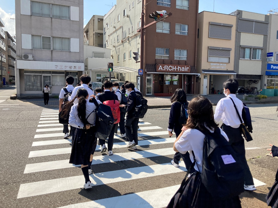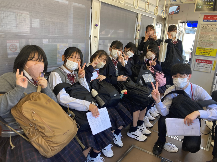 今年度の新中2は3クラスのため、各クラス集合時間をずらし、乗車する列車をずらしました。