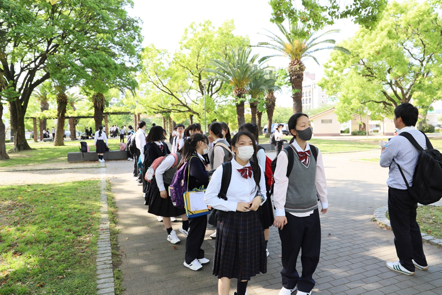 昼食はザビエル公園でお弁当。初夏を思わせる晴天のもと、楽しいひと時を過ごしました。