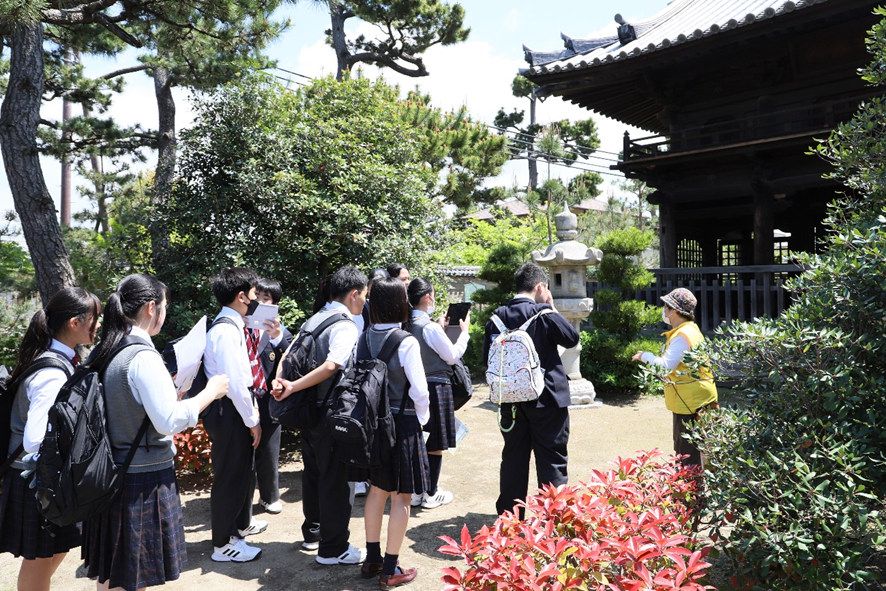 それ以外の時間はグループに分かれ、事前に立てた行動計画に基づいて、『妙国寺』『堺伝承館』『山口家住宅』『千利休屋敷跡』など、堺市内の様々な史跡・見どころを巡りました。