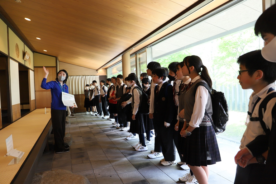 3組は最初に「さかい利晶の杜」へ「お点前体験」に行きました。