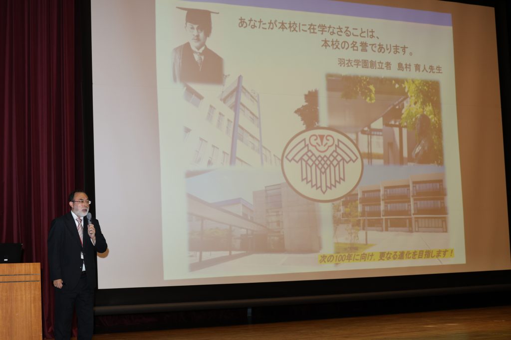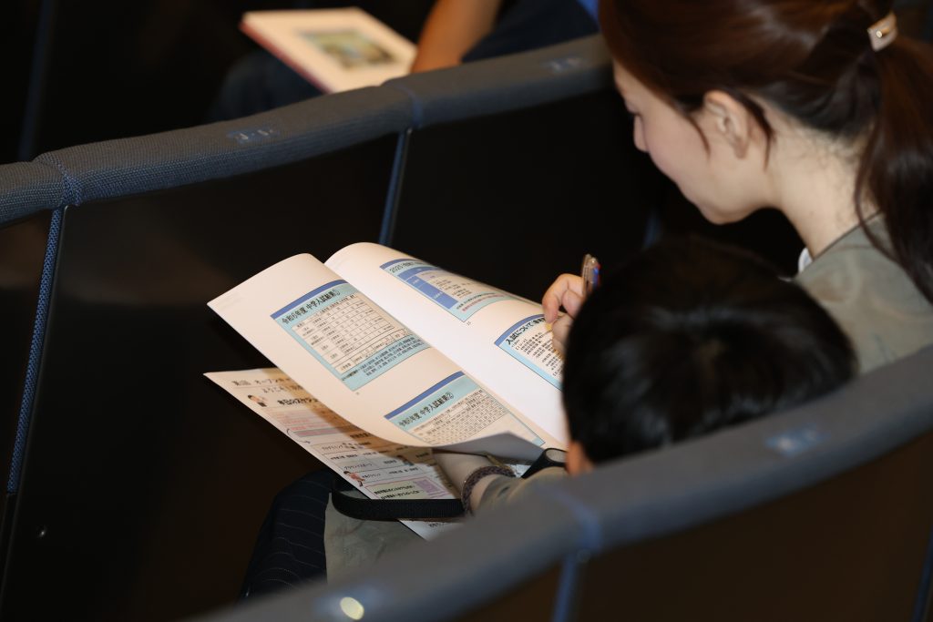 その後は中学教頭より、学校の取り組みや大学進学状況などの説明がありました。学校行事に、部活動に、勉強に、留学にと多彩な学びを経験できることをお伝えさせていただきました。