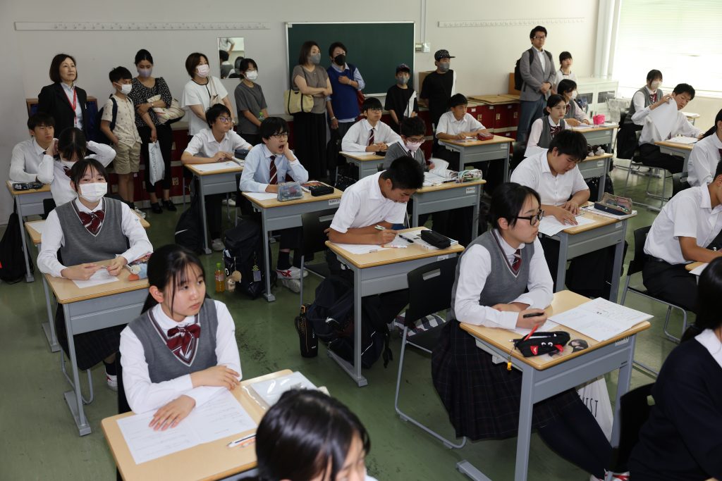この後のプログラムは、教員引率の校内見学がおこなわれ、中学各学年の授業の様子もご覧いただきました。