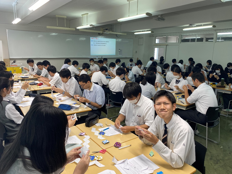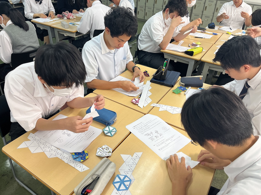7月9日(火)大阪公立大学の会沢先生にお越しいただき、高2Ⅰ類理系クラスと高3Ⅰ類理系クラスが「折り紙から生まれる新しい数学」というタイトルの講義を受講しました。