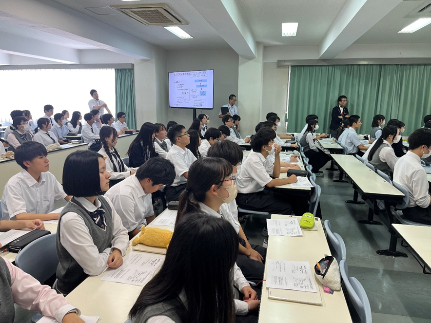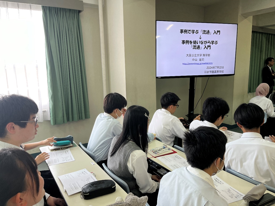 大阪公立大学出張講座の第2弾を続けて実施しました!7月10日、大阪公立大学より中山先生にお越しいただき、高1Ⅰ類、高2Ⅰ類文系、高3Ⅰ類文系の合計4クラスが[事例を使いながら学ぶ「流通」入門]というタイトルの講義を受講しました。