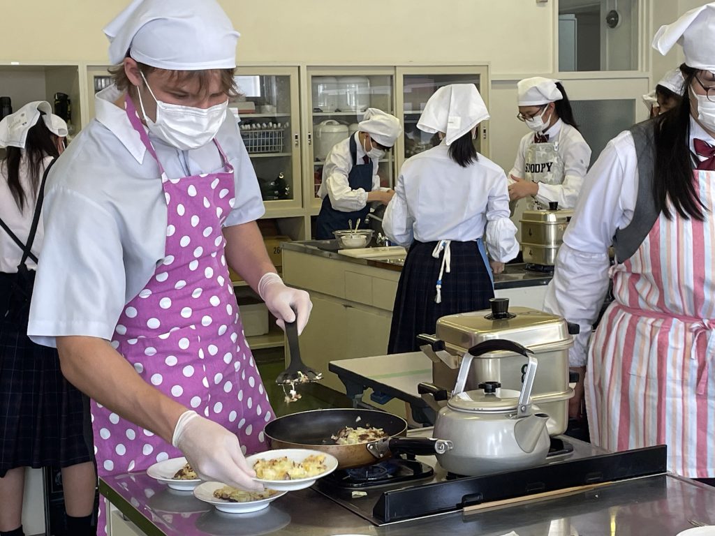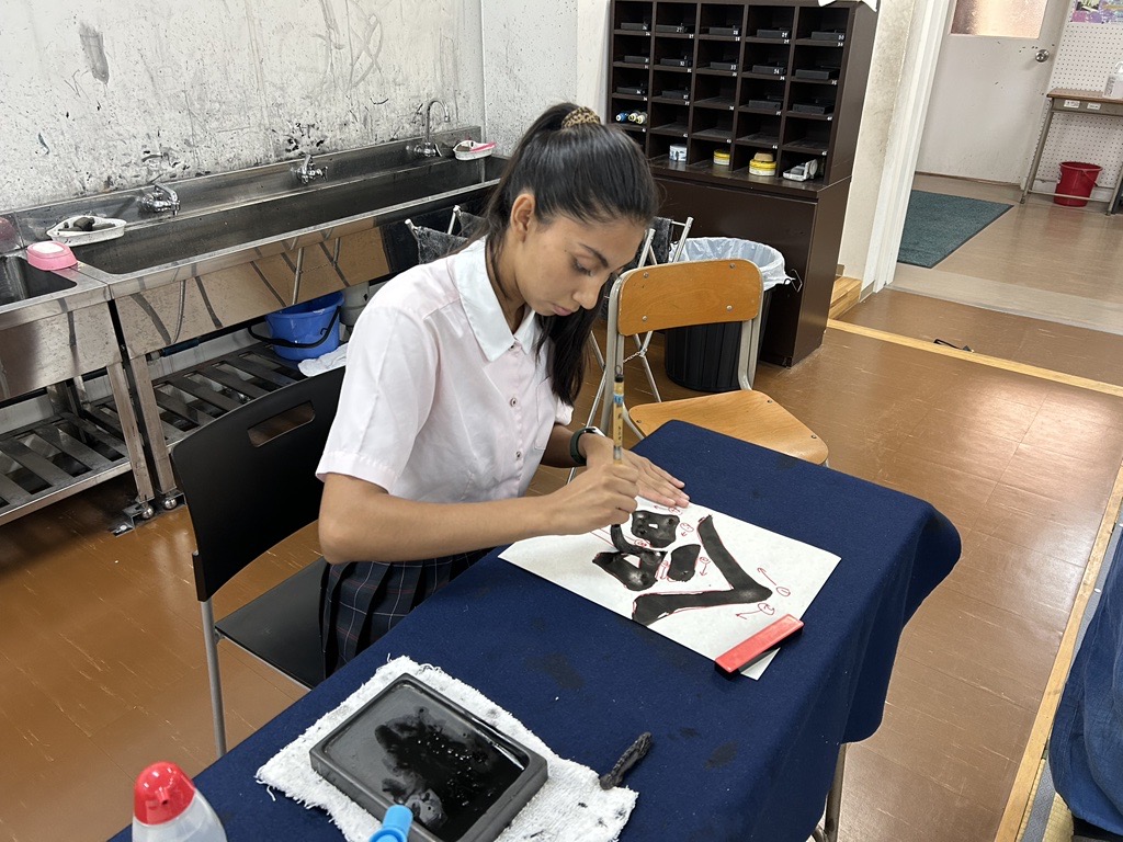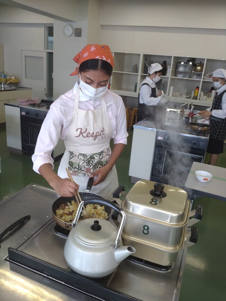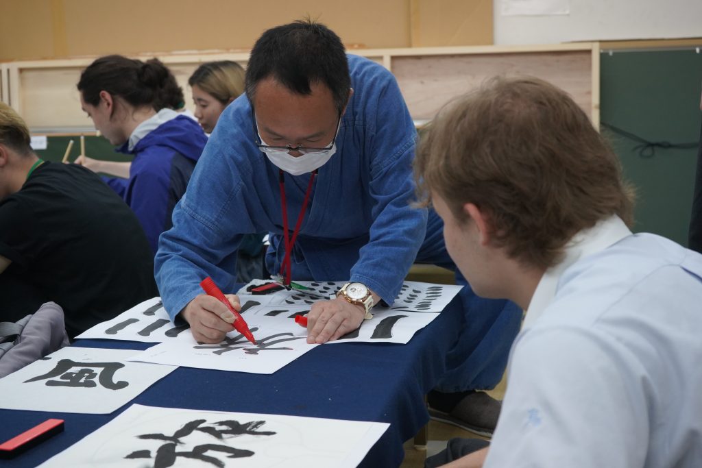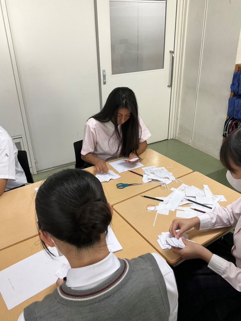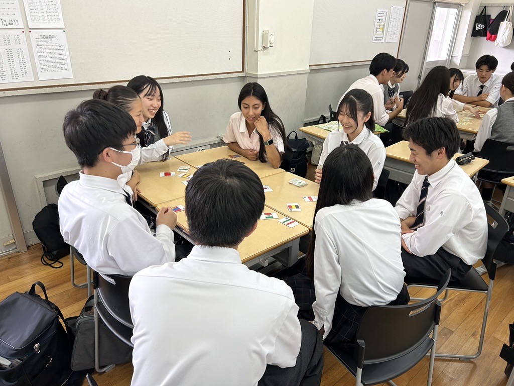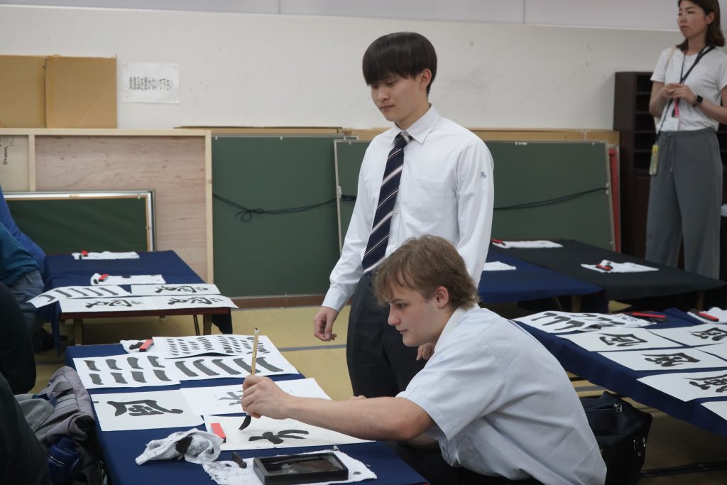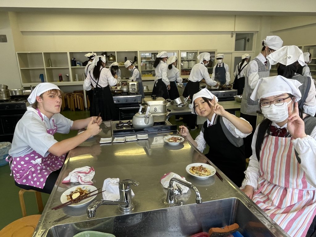 それぞれ芸術科目の書道体験、英語の時間や化学の時間、調理実習などでゲームやワークショップの授業など、いろいろな授業に参加し、英語、日本語を織り交ぜてコミュニケーションをとっています!