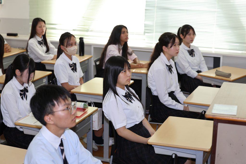 1時間目の高校の部では、中野校長より1学期の振り返りがあり、特に学園祭をみんなの力で成功させたことに触れられました。自治会を中心に盛り上げた行事でしたが、「みんなに喜んでもらう」ことが「仕事」の大事な意味であること、こうした経験が将来の仕事につながることについて指摘がありました。