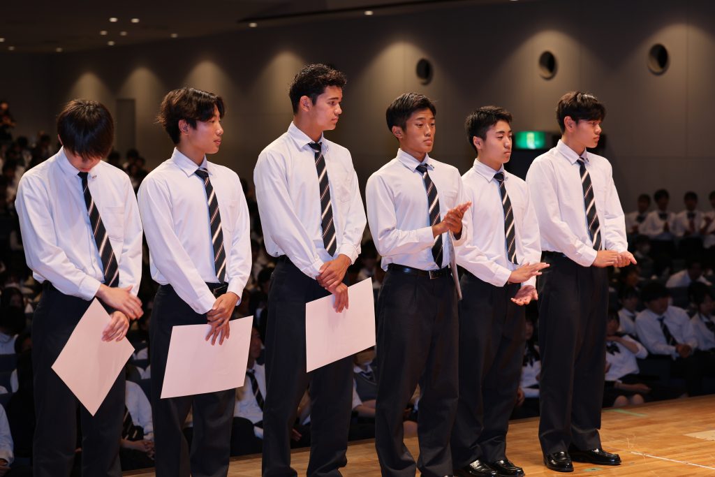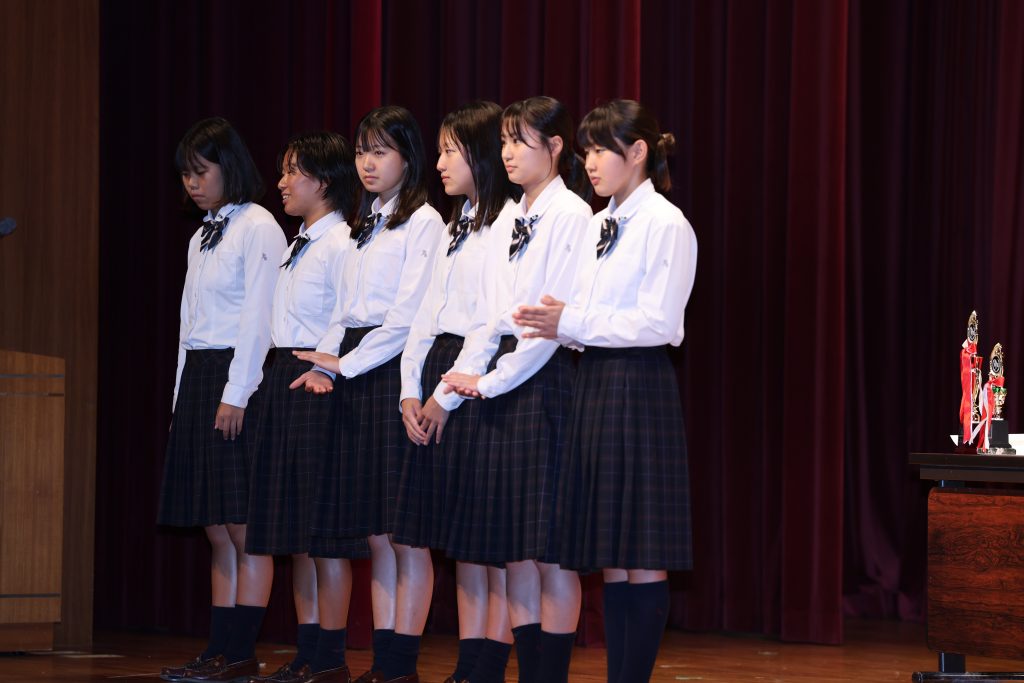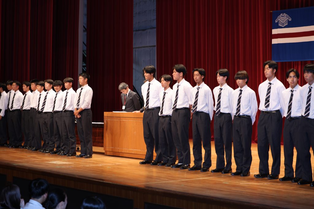 特にインターハイ出場を決めた女子ホッケー部、ボクシング競技の三木さんから、全国で活躍するという力強いメッセージがありました。他にも近畿大会出場を決めた男女水泳部、男子ホッケー部、初のベスト8入りを決めた男子バスケットボール部、他にもダンス部やソフトボール部、囲碁将棋部などが表彰され、大きな拍手が送られました。