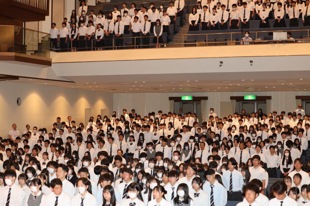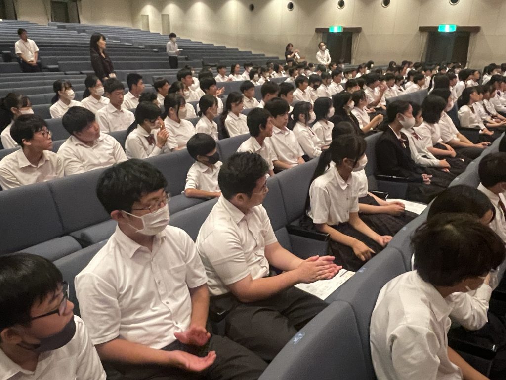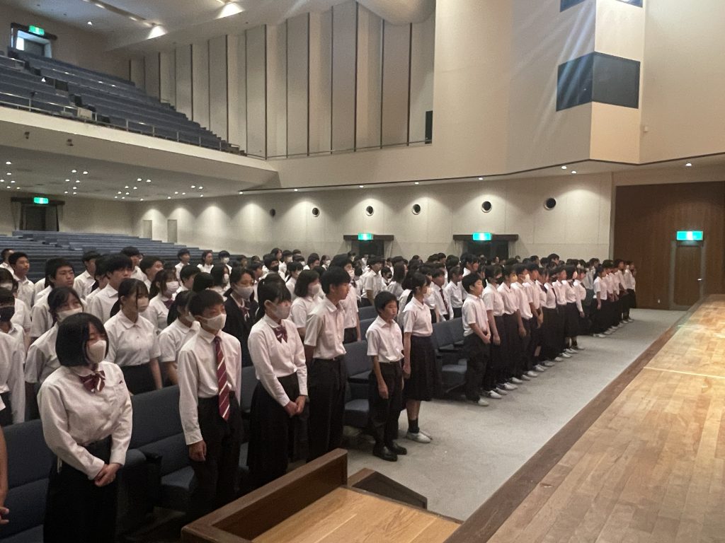 7月19日に1学期終業式を実施しました。1時間目には高1・高3は講堂にて、高2はクラスでライブ配信を視聴する形で実施。中学は2時間目に講堂にておこないました。
