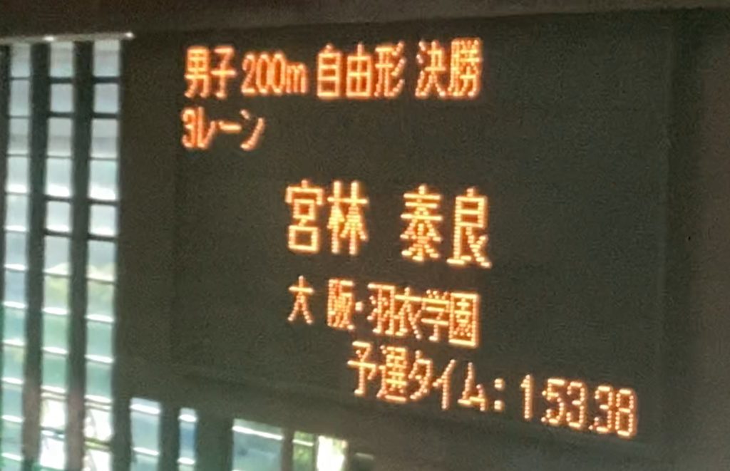 ◆宮林さん 200m自由形(1分53秒09 決勝4位・全国大会標準記録突破)