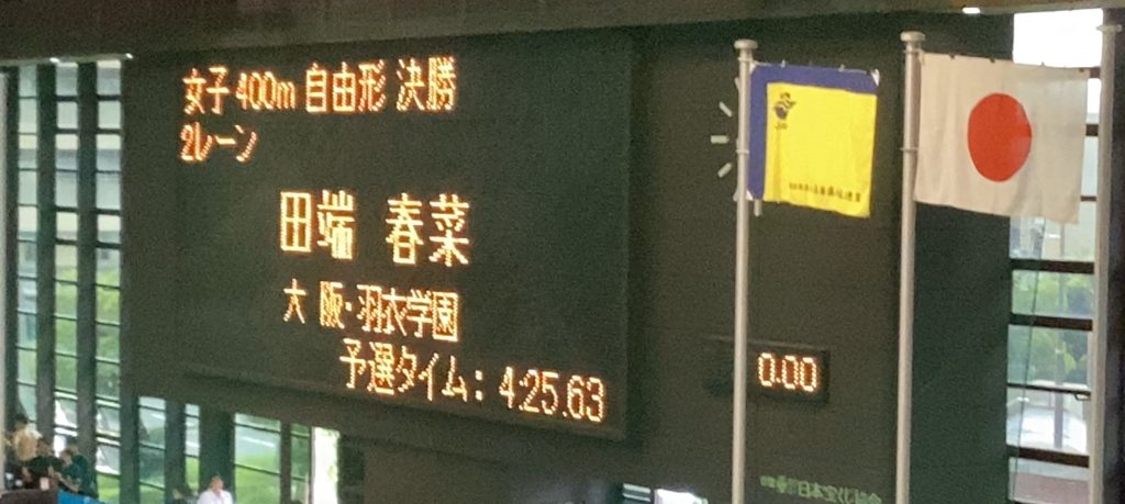 ◇田端さん 女子400m自由形(4分25秒00 決勝4位・全国大会標準記録突破)