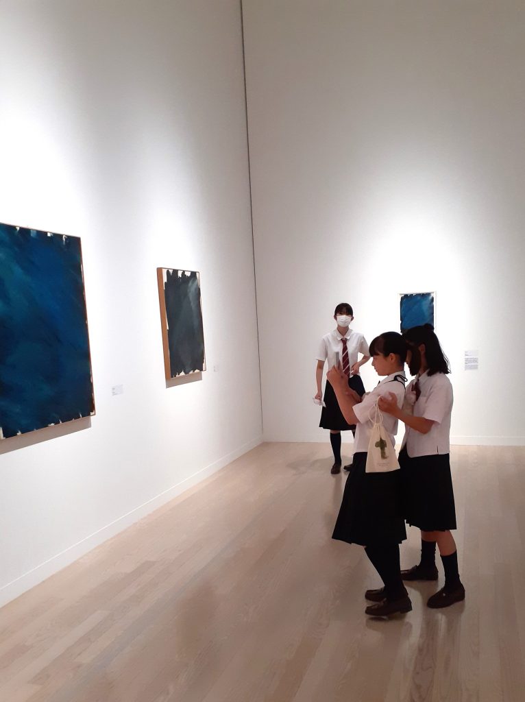 暑い中での移動後の美術館内は涼しく、生徒たちは展示作品を鑑賞しながら作品をスマホで撮影したりヒソヒソと感想を述べたりと有意義な時間を過ごしました。