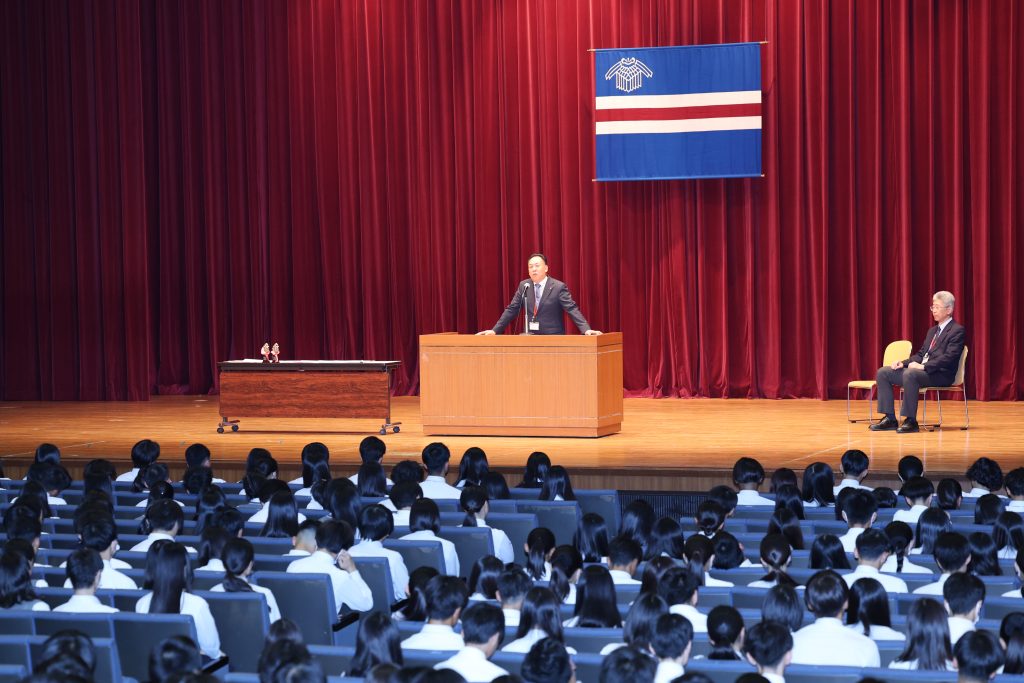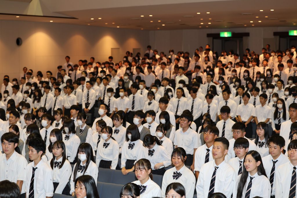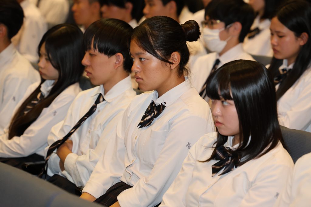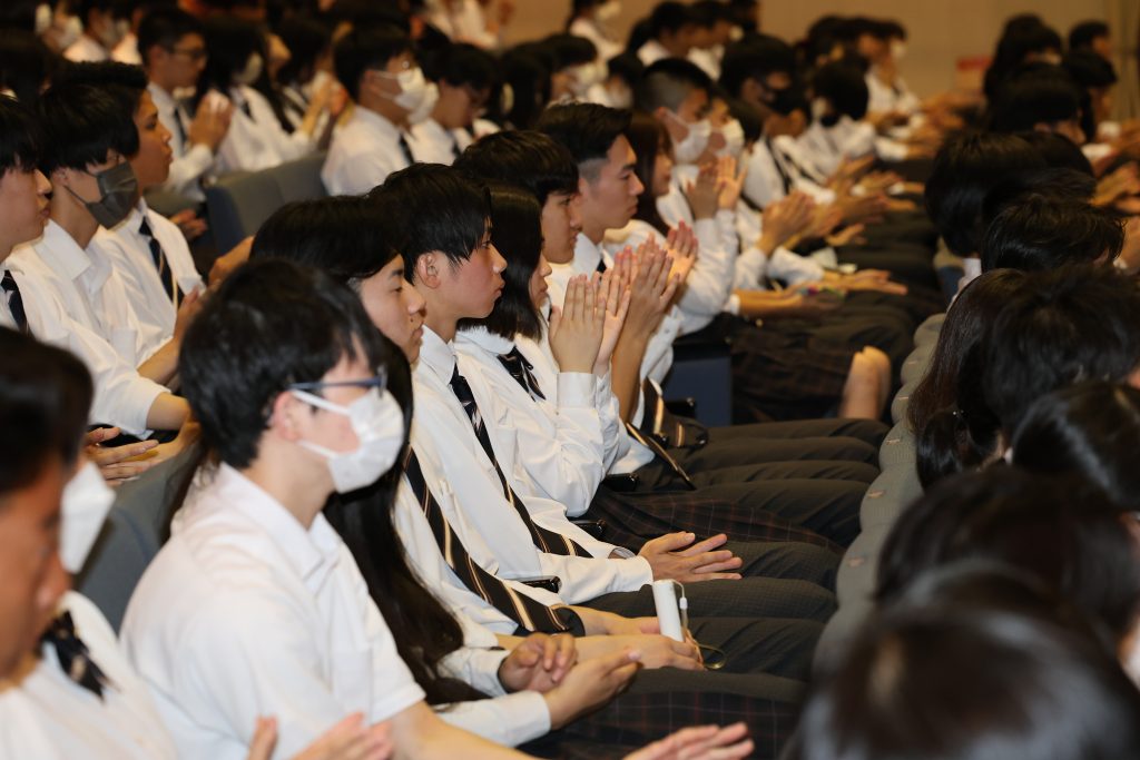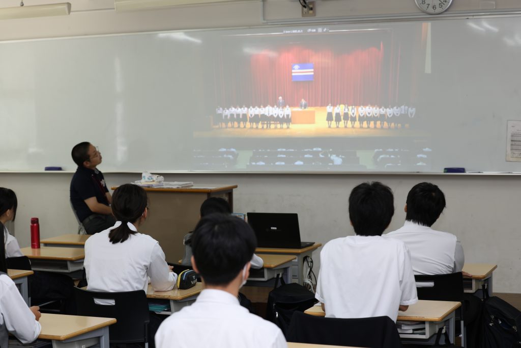 始業式は、高2・高3が講堂にて参列、1年生は教室でライブ配信で参加する形となりました。