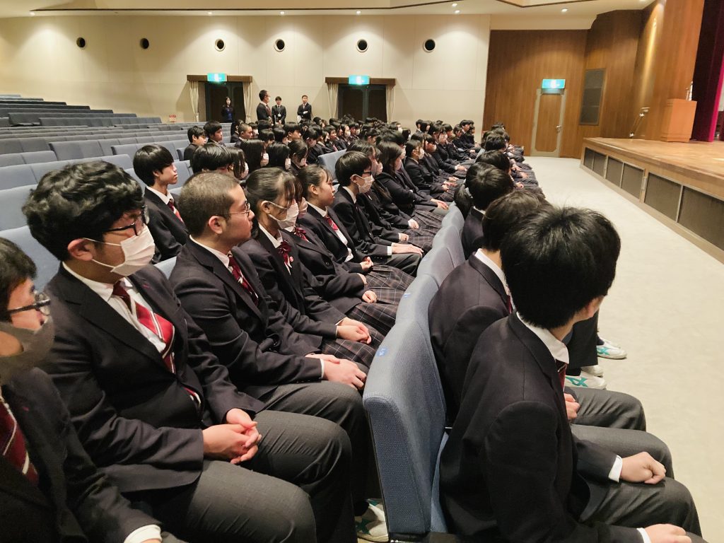 中学校の式は、生徒たちの素晴らしい校歌斉唱で始まりました♪大きな歌声が講堂に響きわたりました!