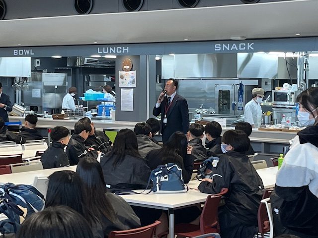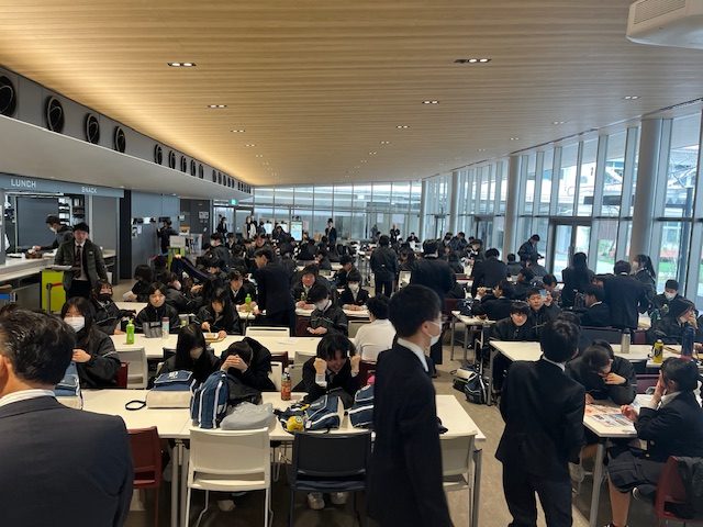 最後は、新しく完成した新しい生徒食堂(いくんどキッチン)にて、「学食体験」もしていただきました!