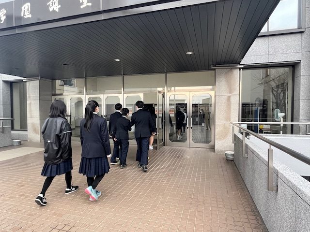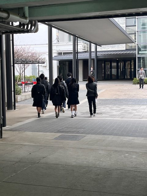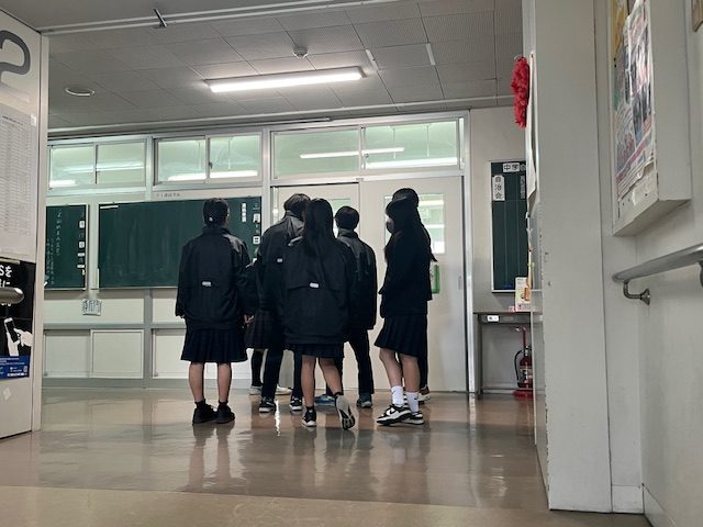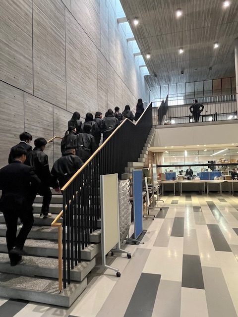 その後、20のグループに分かれて校内見学へ。VIVAの生徒たちとともに、浜寺中学校出身の在籍する先輩方に学校内を詳しく案内してもらいました!