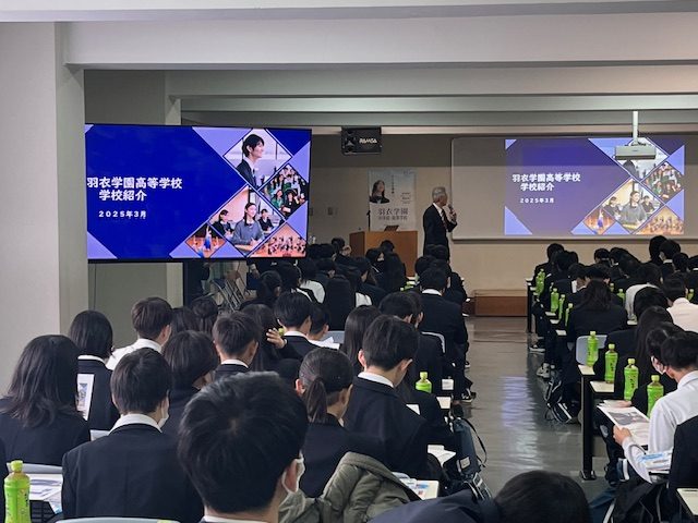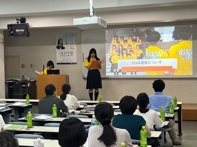 VIVA(生徒入試広報チーム)の生徒の皆さんによるVIVAの活動紹介、学校行事紹介、的場教頭先生による学校説明をおこない、羽衣学園の特長をいろいろとお伝えしました。