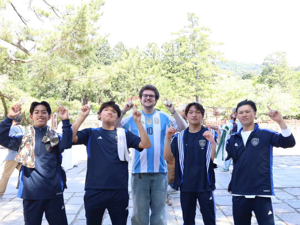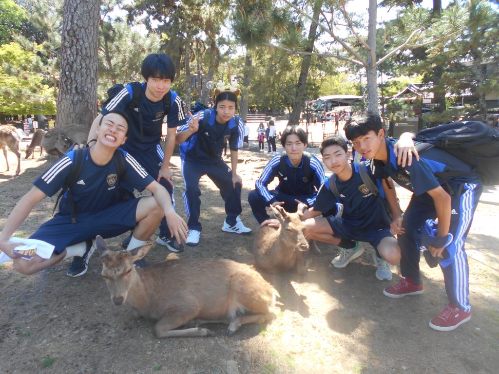 国の天然記念物であるシカとも目いっぱい戯れた生徒たち。高校生活のいい思い出になったと思います!!