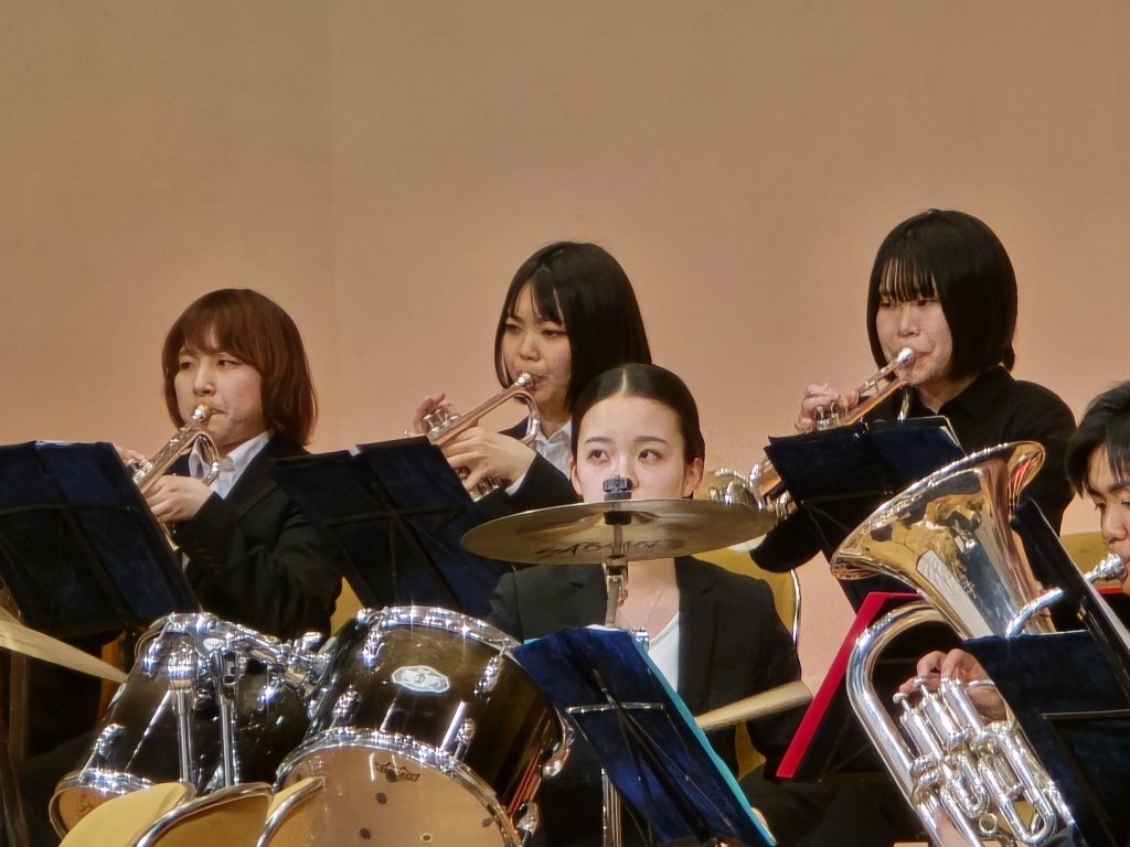 今回の演奏会では、吹奏楽部のOB・OGの皆様にも出演していただき、久々に再会した同級生や後輩達と吹奏楽を共有する場となりました。日頃小編成で活動している我現役生にとっては、なかなか出来ない経験でもあり、同じ部活で3年間活動していた先輩たちの貴重なアドバイスを頂けました。卒業してからも演奏会という場を作れたこと、そこに集まって音楽が出来たこと、顧問として嬉しく思います。