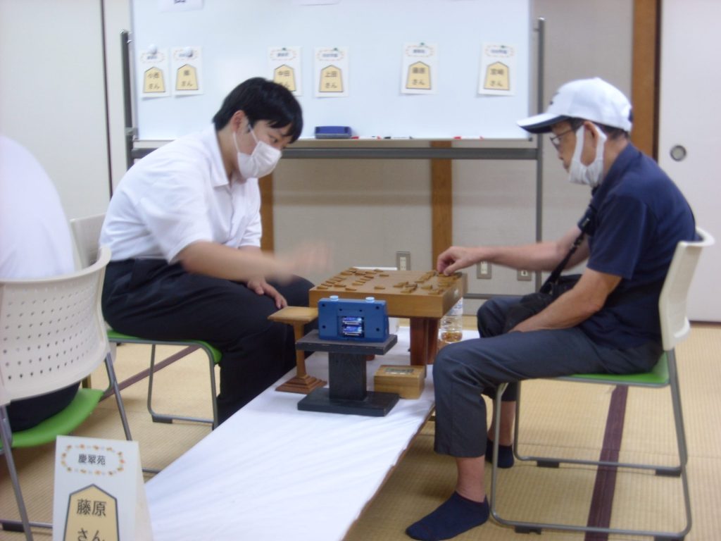 7月30日、囲碁将棋部員5名が、高石市立老人福祉センター「慶翠苑」で、地域のボランティア活動の一環として、将棋の交流対局を行いました!顧問の片岡先生からの報告です!