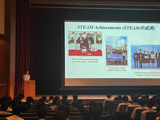 嘉道理中學からも英語で学校の紹介があり、「STEAM教育」に力を入れ、多彩な分野で優れた教育が行われている学校であることがわかりました!また留学生も各地から来ており、いろいろな国のルーツを持つ生徒たちがダンスを披露してくれました!