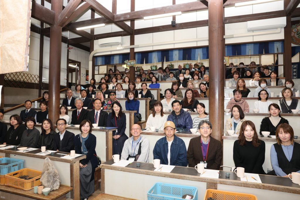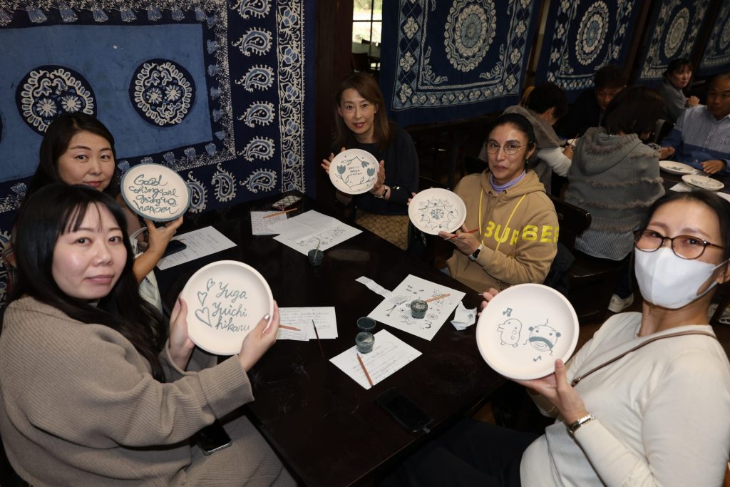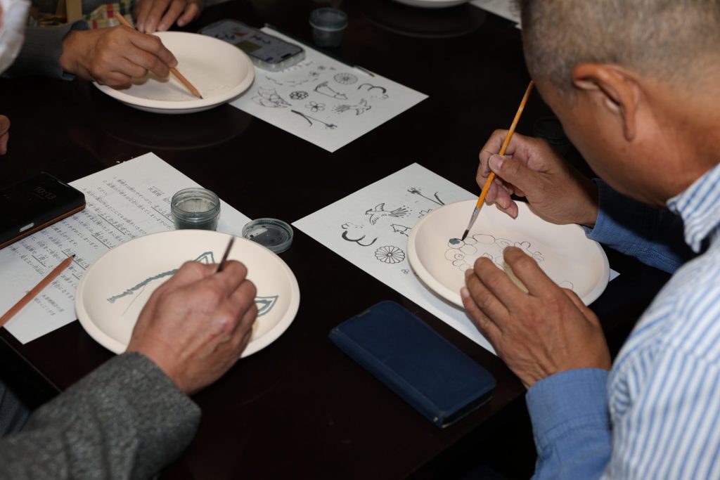 PTA役員のみなさまの入念な準備の下、バス2台で早朝に羽衣駅下がりを出発。まずは「水茎焼き陶芸の里」にて絵付け体験。皿や茶わん、コップなどを選んで、それぞれ思い思いのイラストを筆で描きました。独特の琵琶湖がイメージされる薄青色がベースの焼き物です。短い時間でしたが、楽しみました。1か月後の完成が楽しみです!