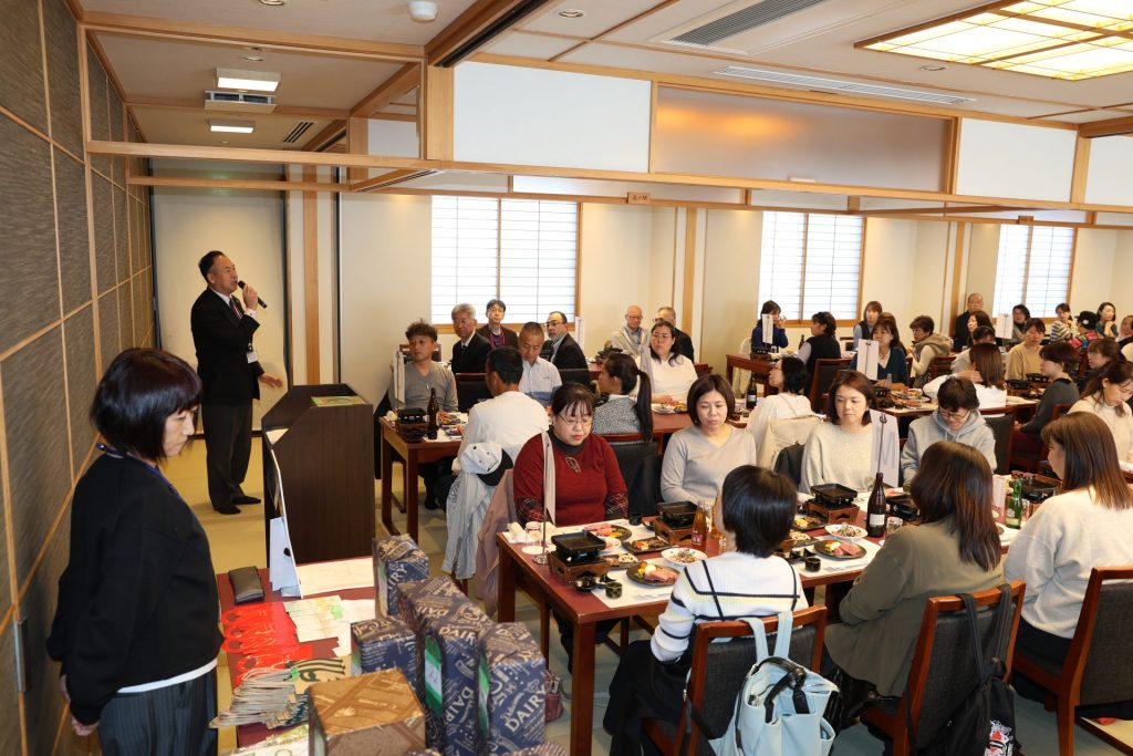 この後はレストラン「毛利志満」で近江牛のランチを賞味!素晴らしいお肉に舌鼓を打ち、おしゃべりしながら絶品の食事を堪能!途中役員の皆様が入念に準備をしていただいた大抽選会を実施!大変盛り上がりました!