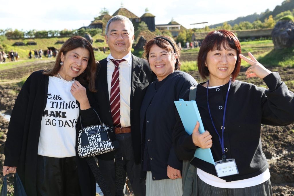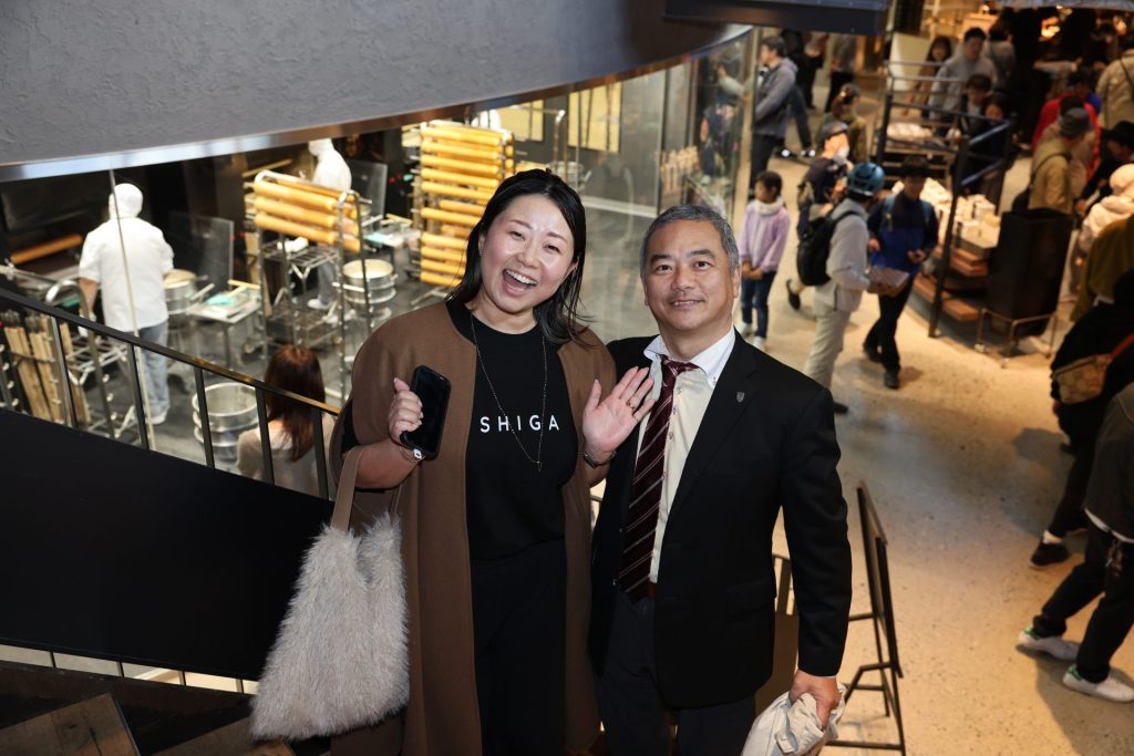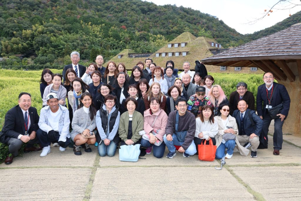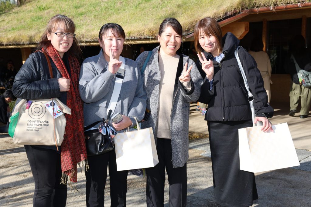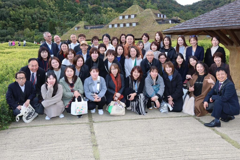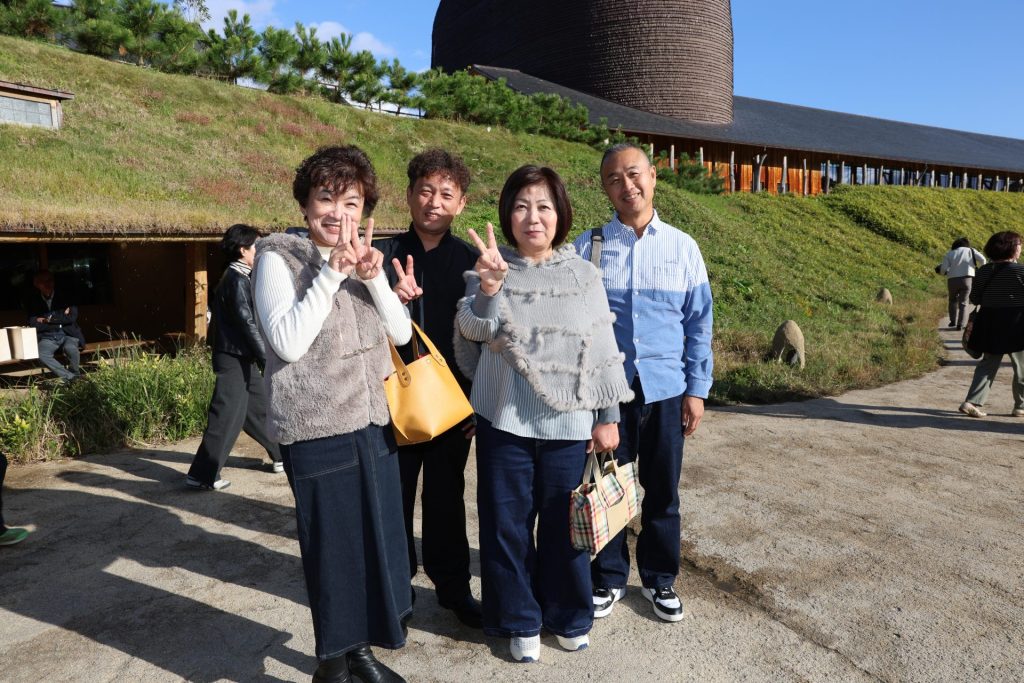 この後は「ラコリーナたねや」へ!有名な和菓子屋「たねや」さんとバームクーヘンで有名な洋菓子店の「クラブハリエ」がフラッグシップ店として有名な施設です。まずはバスごとに集合写真を撮影。