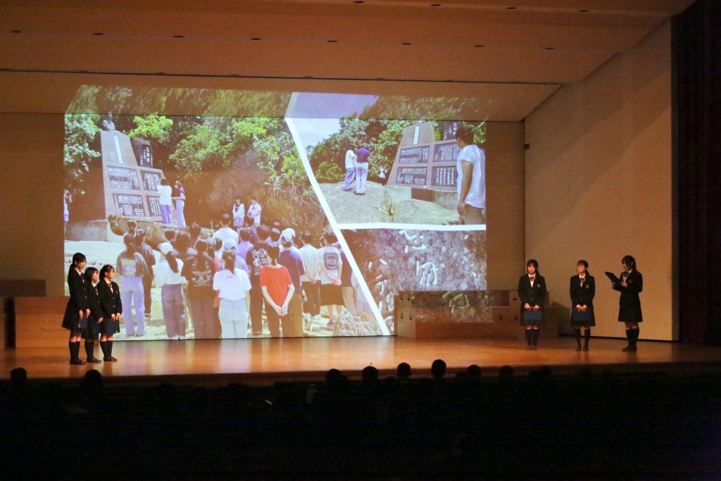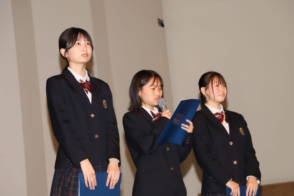 学年からは、3年生が「修学旅行」、2年生が「イングリッシュキャンプ」について発表してくれました。