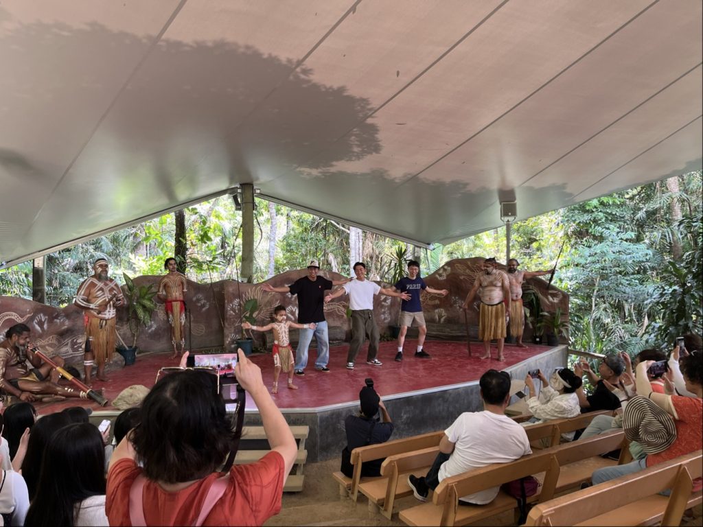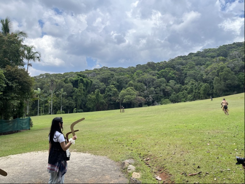 先住民のアボリジニーの方々のダンスショー、ブーメラン体験などを行いました。また、今日は日曜日ということで、アボリジナルのお子さんも学校が休みでショーに参加してくれていました!