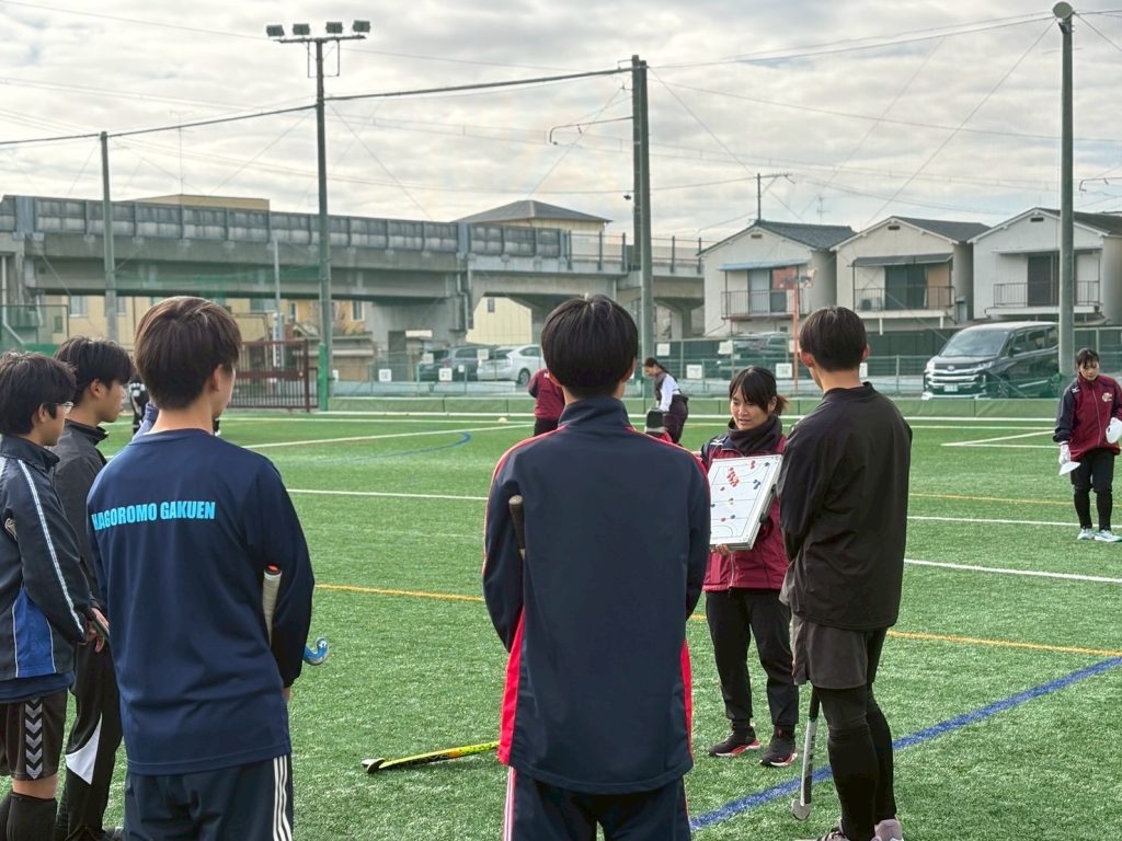 1/31(土)にホッケートップリーグである「さくらリーグ」所属の「南都銀行SHOOTING STARS」の選手・スタッフをお招きして、本校ホッケー部へのホッケースクールを開催していただきました。