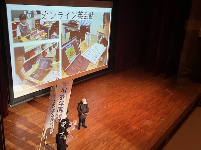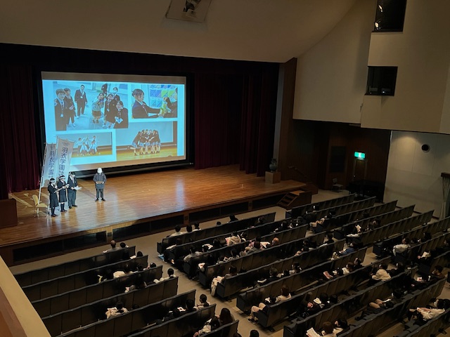 芝居風の仕立てで、学園の冬の行事(かるた大会、国際交流、スキー校外学習)について、コントも交えながら楽しくプレゼンし、わかりやすく参加者に紹介してくれました!