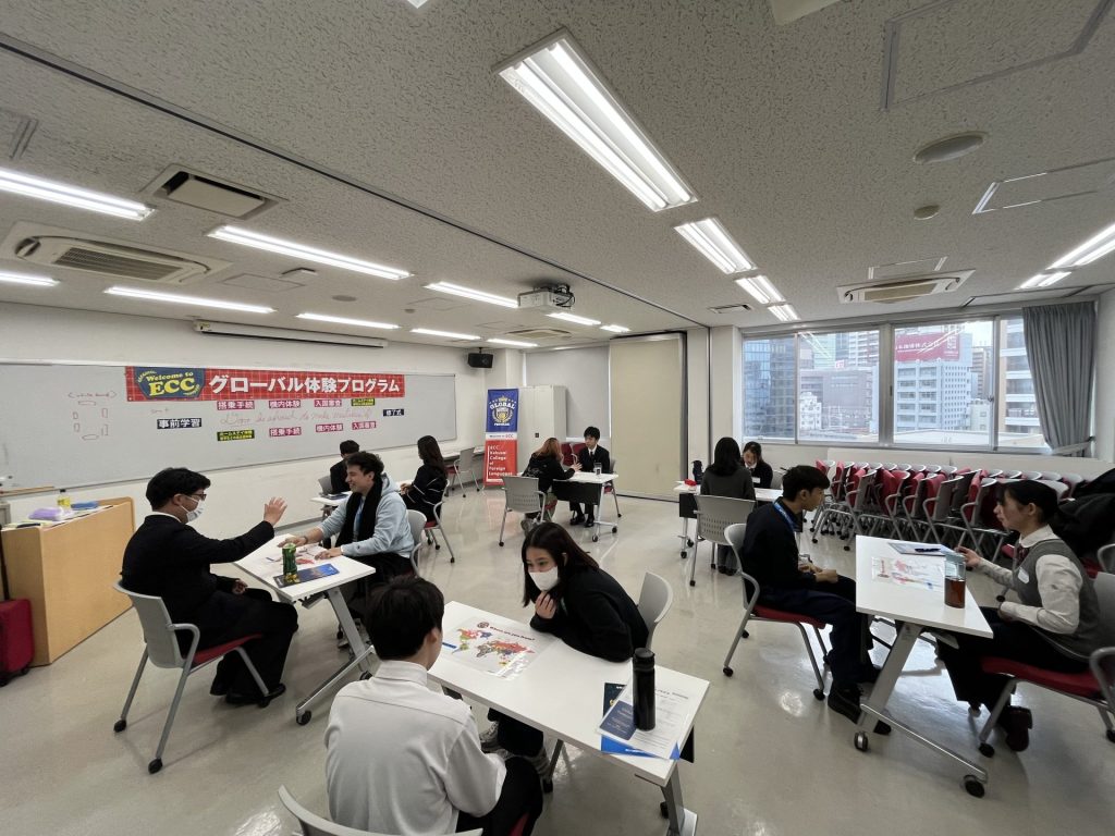 このプログラムは、大阪府が実施する、外国人スタッフと英語だけを使った「実践的英語体験」で、ECC国際外語専門学校を会場として行われました。