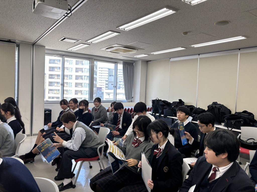 中3では、学年末考査の前となる2月に大阪府主催の「グローバル体験プログラム」に参加しました!
