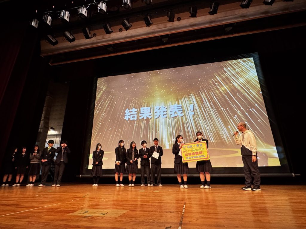 「みらクリAWARD」に出場した2チームは、校内での最終代表プレゼン同様に堂々とした発表を行ってくれました。また、他校の発表からも刺激を受け、積極的に意見交換を行う姿も見ることができました。そして、いよいよ結果発表。本校の1チームが見事、最優秀グランプリを獲得しました!