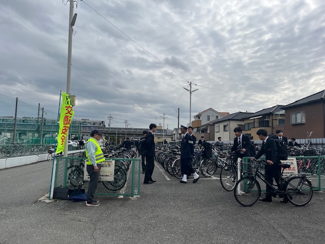 放課後には、駐輪場で安全指導も行っていただき、下校する生徒たちに声掛けをしていただきました。