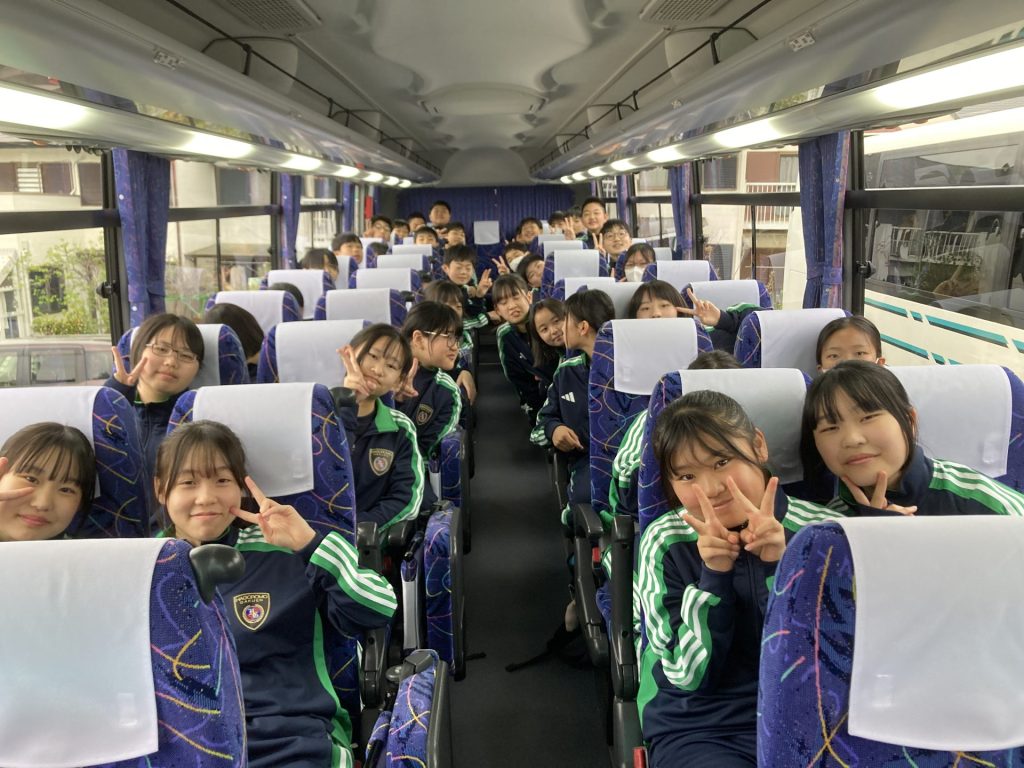 まずは学校に集合して、各クラスそろって羽衣駅下がりまで歩いて、バスに乗り込みました。