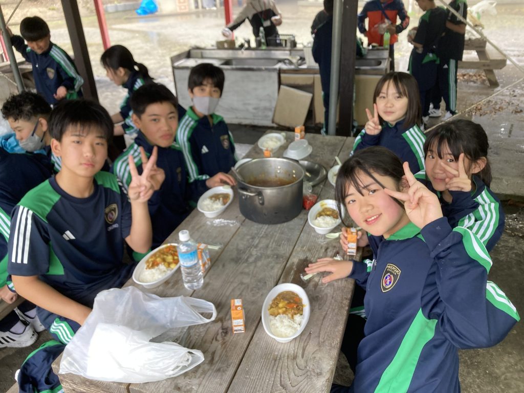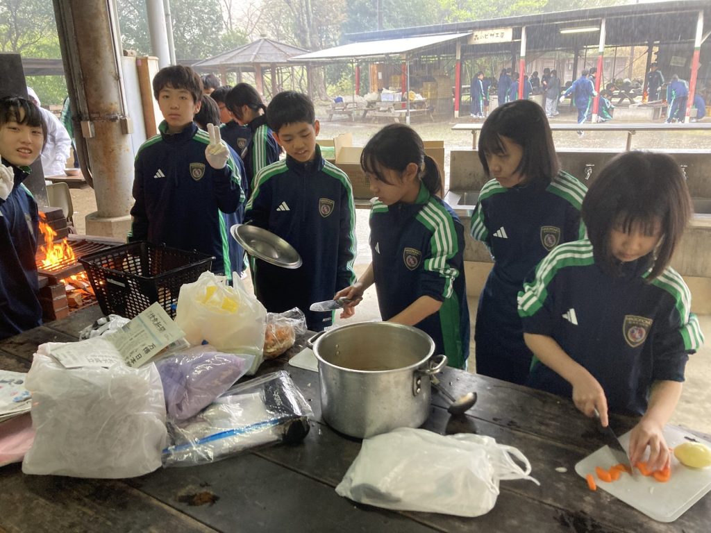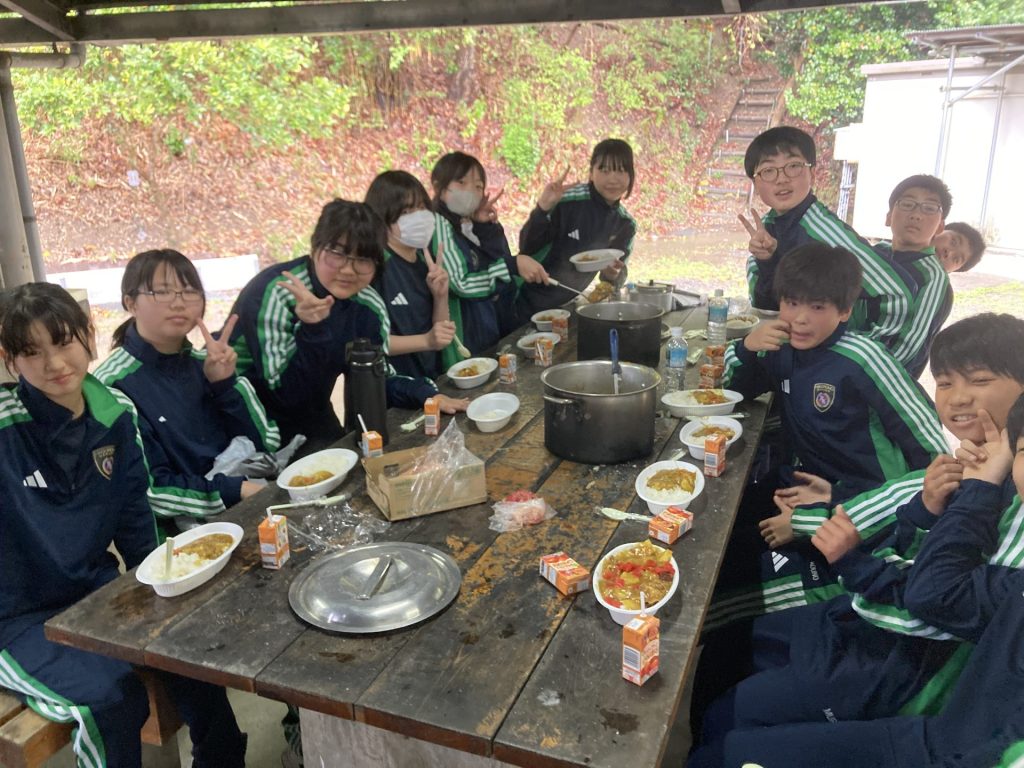 降りしきる雨の中で大変でしたが、何とかそれぞれの班が協力して美味しいカレーを作ることができました!