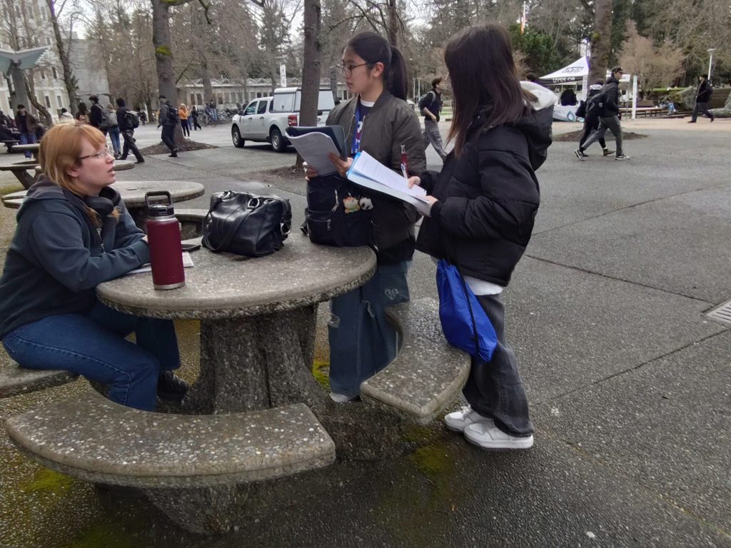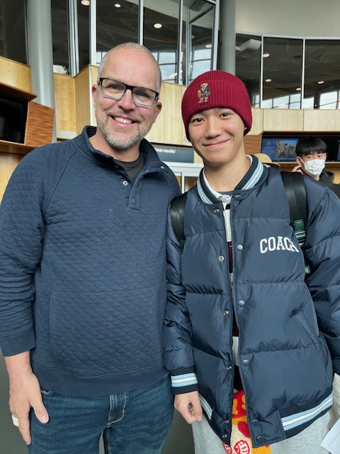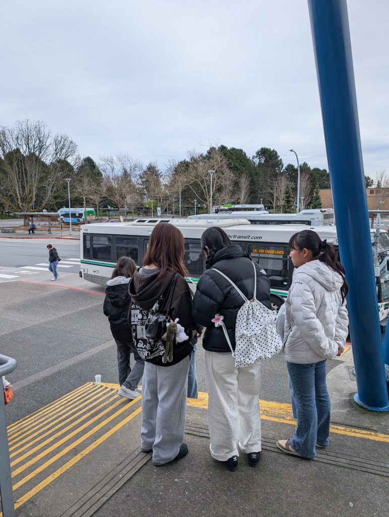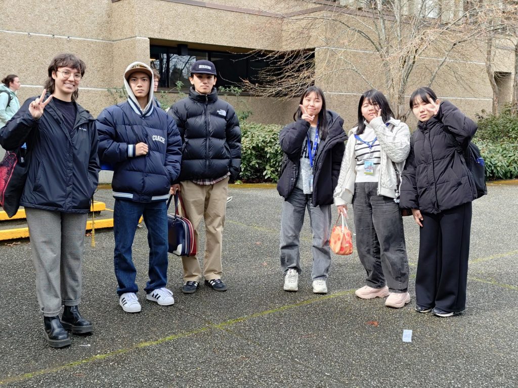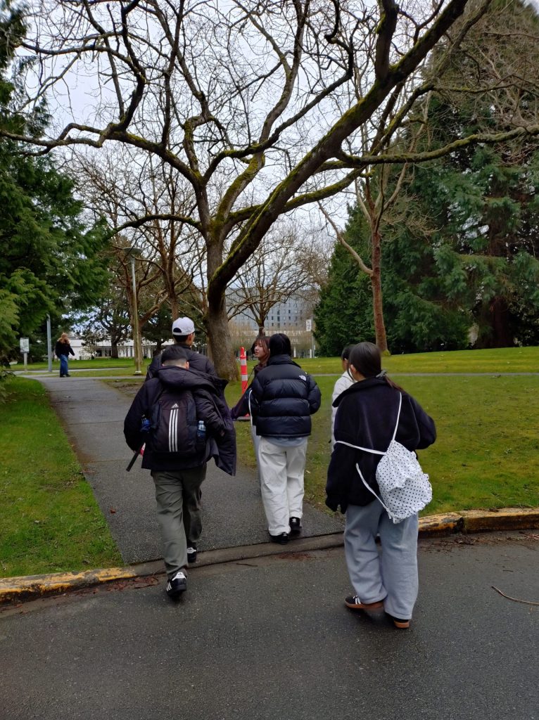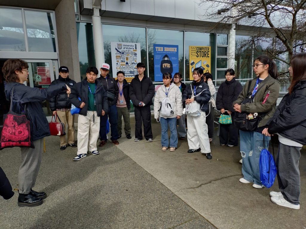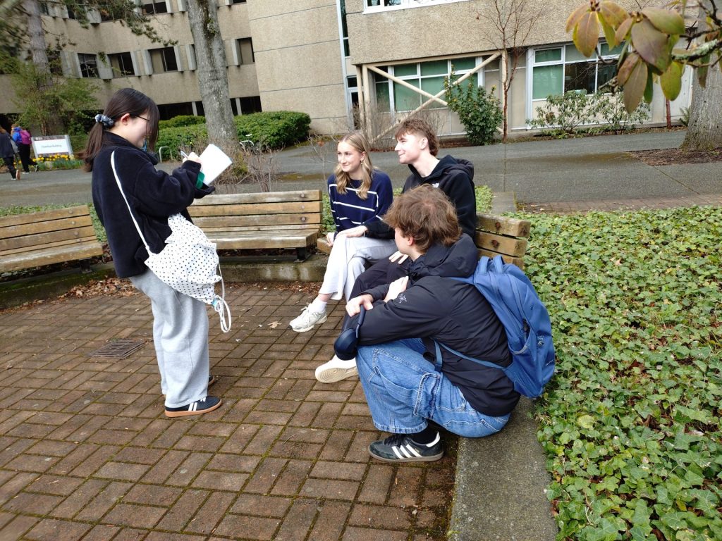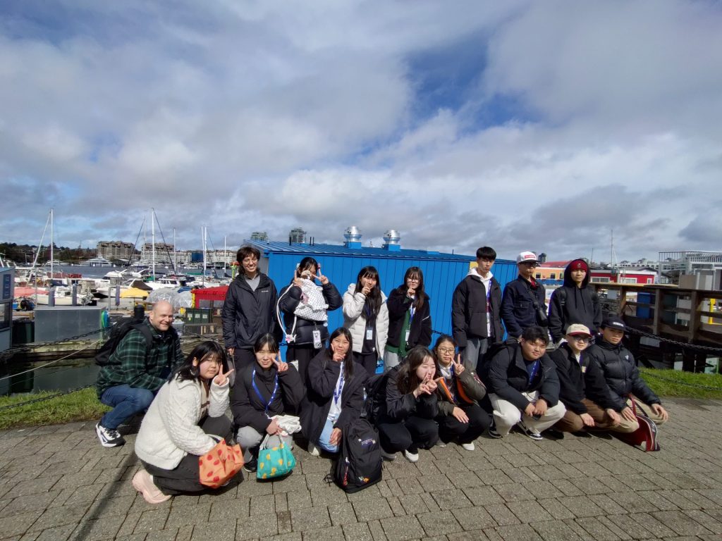 生徒たちは緊張していましたが、頑張って声をかけ、学生さんにwelcome to Victoriaと言ってもらったり