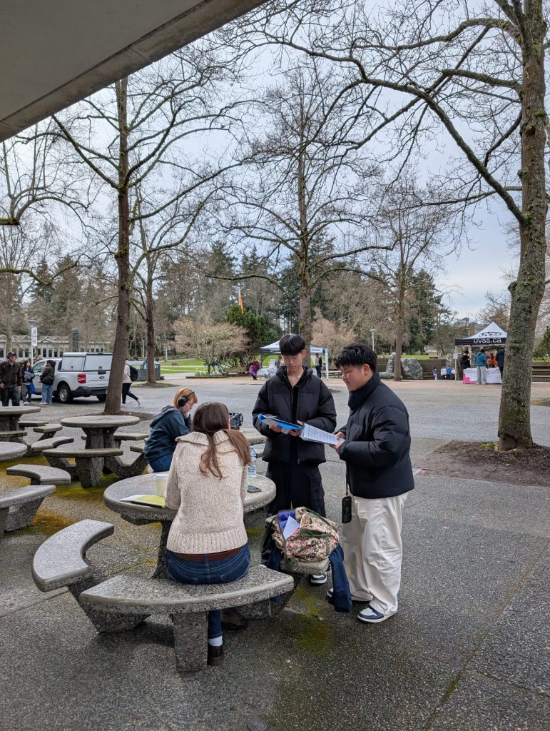 インタビューのためのグループ分けをおこない、3つのグループに分かれてバディと講師のサポートのもと大学内を見て回りつつ、現地の大学生へのインタビューを行いました。