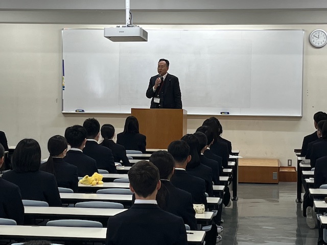 前日、学年で結団式をおこない、校長先生からこの修学旅行に向けて学んでほしいことがメッセージとして伝えられ、代表生徒からは、素晴らしい修学旅行にしたいという見事なスピーチがありました。