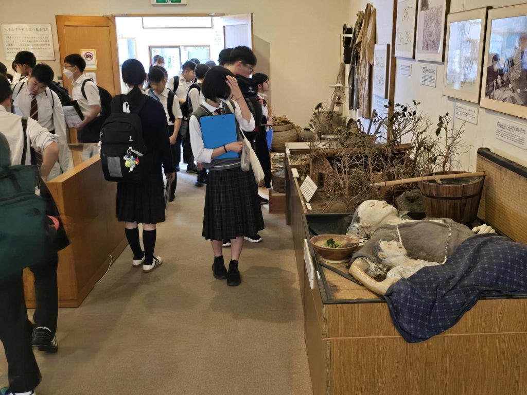 生徒たちは真剣に資料を見学し、学芸員さんのお話を聴いていました。