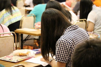 生徒たちは夜の補習と再テストを回避するために、それはもう必死でテストに取り組んでいました。