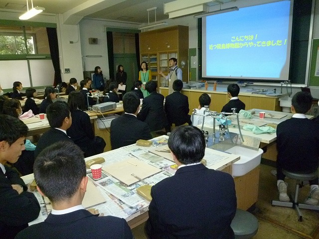 近つ飛鳥博物館の方にご来校いただき、中1の生徒たちが体験しました。
