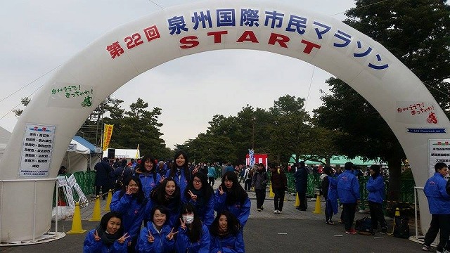 毎年恒例で本校は泉州国際マラソンの補助員として参加しています。