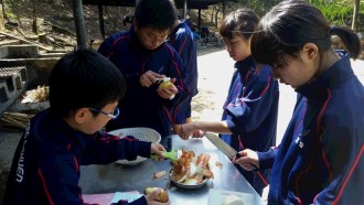 中学新入生オリエンテーション合宿、野外炊さんの様子です!! 美味しいカレーができたようですよヽ(^o^)丿