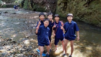 新入生オリエンテーション合宿の中学生の様子が速報で入ってきました! 良いお天気に恵まれ、午前中はアスレチックや川遊びなどを楽しみました。