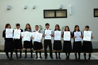 羽衣学園では、ユネスコ世界寺子屋運に全校生徒で取り組んでいます。 先日、校内の呼びかけて集まった書きそんじハガキの贈呈式が行われました。