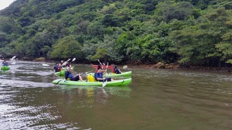 本日のメインイベント!!カヌー体験の様子が届きました。