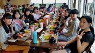 郷土料理のバイキングです!八重山産のお刺身が生徒たちに大人気でした!