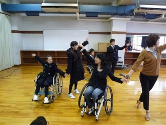 写真は、中学1年生の恒例となっている車いすダンスの様子です。